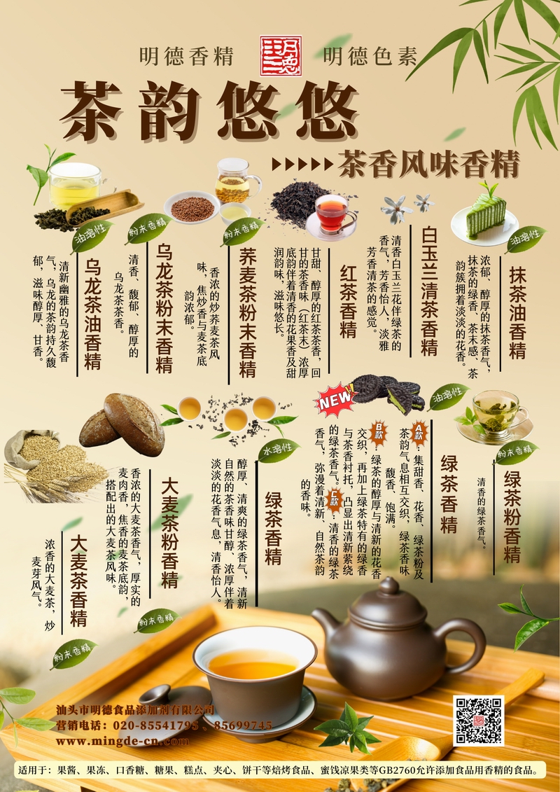 汕頭市明德食品添加劑有限公司推出的茶香風(fēng)味系列香精,涵蓋烏龍茶、蕎麥茶、紅茶、白玉蘭清茶、抹茶、大麥茶、綠茶等多種茶類調(diào)性,滿足飲品、烘焙、糖果、乳制品、調(diào)味品等多領(lǐng)域的茶香需求,為B端客戶提供穩(wěn)定、真實的茶韻香氣解決方案。
