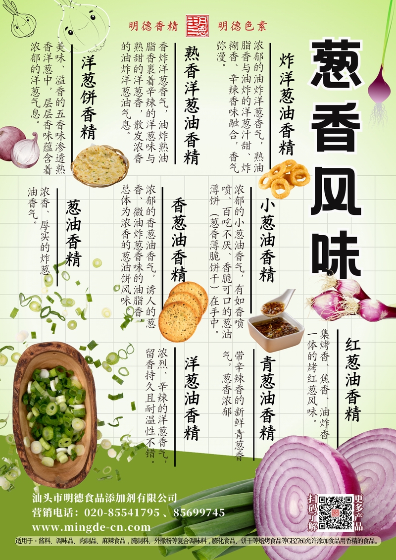 明德蔥香風(fēng)味香精 | 油香蔥韻 覆蓋多場景 汕頭市明德食品添加劑有限公司推出的蔥香風(fēng)味香精系列,涵蓋熟香洋蔥油香精、炸洋蔥油香精、小蔥油香精、香蔥油香精、洋蔥油香精、青蔥油香精、紅蔥油香精、洋蔥餅香精、蔥油香精等多種品類。產(chǎn)品呈現(xiàn)真實蔥香、洋蔥甜香與炸香特征,留香穩(wěn)定持久,適用于醬料、復(fù)合調(diào)味、肉制品、焙烤以及休閑食品等B端應(yīng)用。